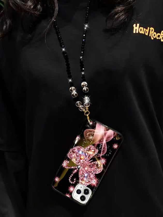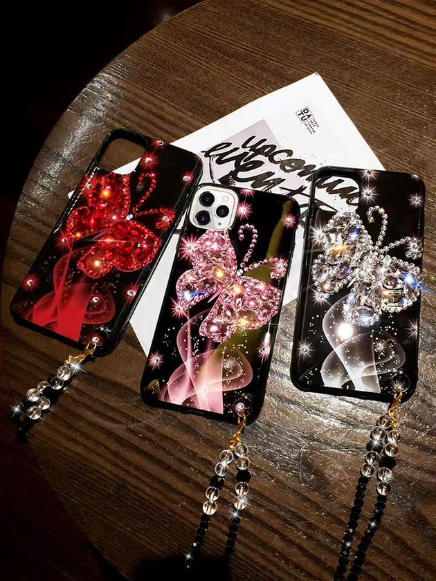 Luxury PINK Rhinestone Butterfly Glitter Lanyard Phone Case