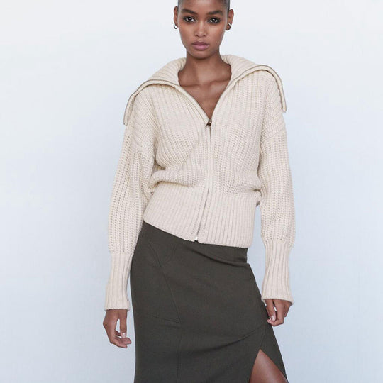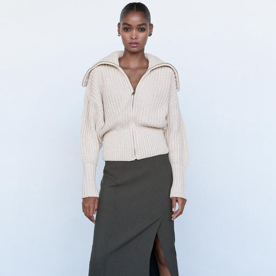 Fashionable Women's Zipper Knitted Jacket