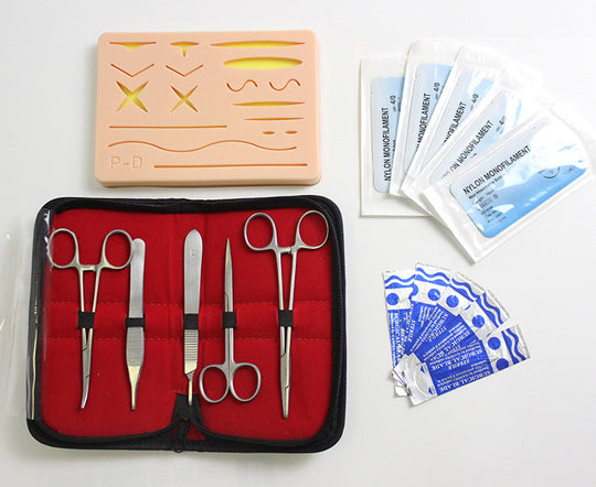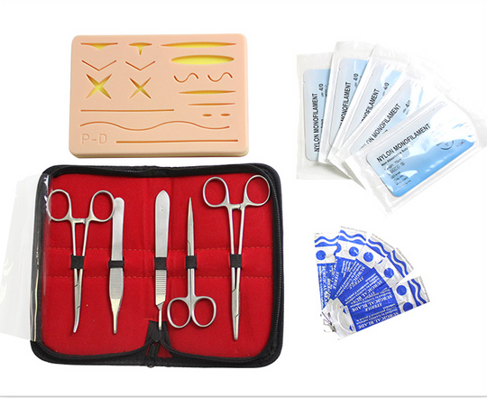 Nahtausrüstungspaket Medizinstudenten üben chirurgische Instrumente