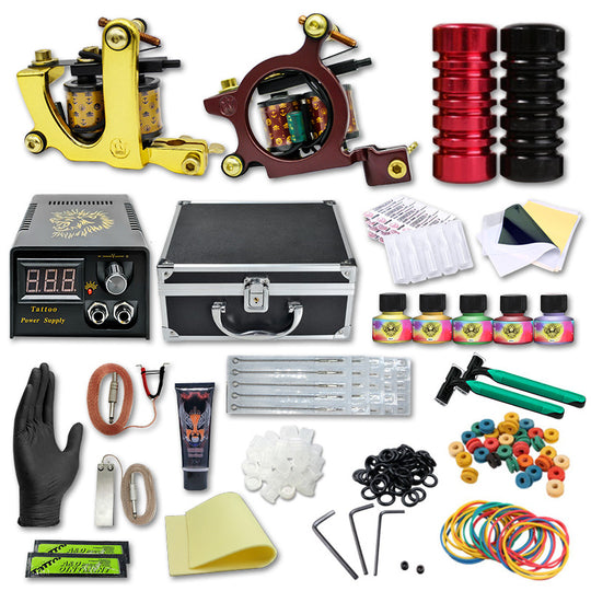Produktinformation: Farbe: Anzug Kategorie „Beauty-Tools“: Sonstige Make-up-/Beauty-Tools Stromversorgung: USA, UK, AU Verpackung Tätowiergerät * 1 Satz Professionelle Tätowiermaschine*2Tätowierungsnetzteil*1Hakendraht aus reinem Kupfer*1Edelstahlpedal*1Griff aus Aluminiumlegierung*2Reisekoffer*1 Professionelle Tätowiernadel*20 Einweg-Desinfektionsnadel*20Professionelles Transferpapier*1 Transferzusatz zum Gel*1 Vaseline*2 Silikon Übungshaut*1Normaler Preis £63.99 -