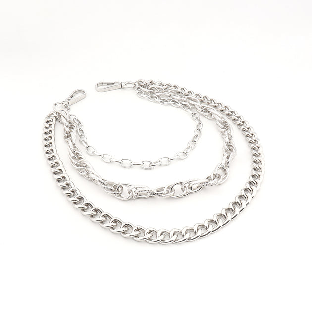 Hip Hop Fashion Hosenkette Männer und Frauen Advanced Sense Multi Ring Silber Metallkette Heavy Metal Industrial Style Jeans Hip-Hop Zubehör