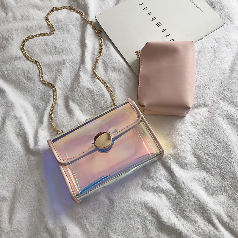Fabric texture: PU Lining texture: no lining Bag shape: horizontal square Luggage trend style: laser bag Processing methods: soft surface